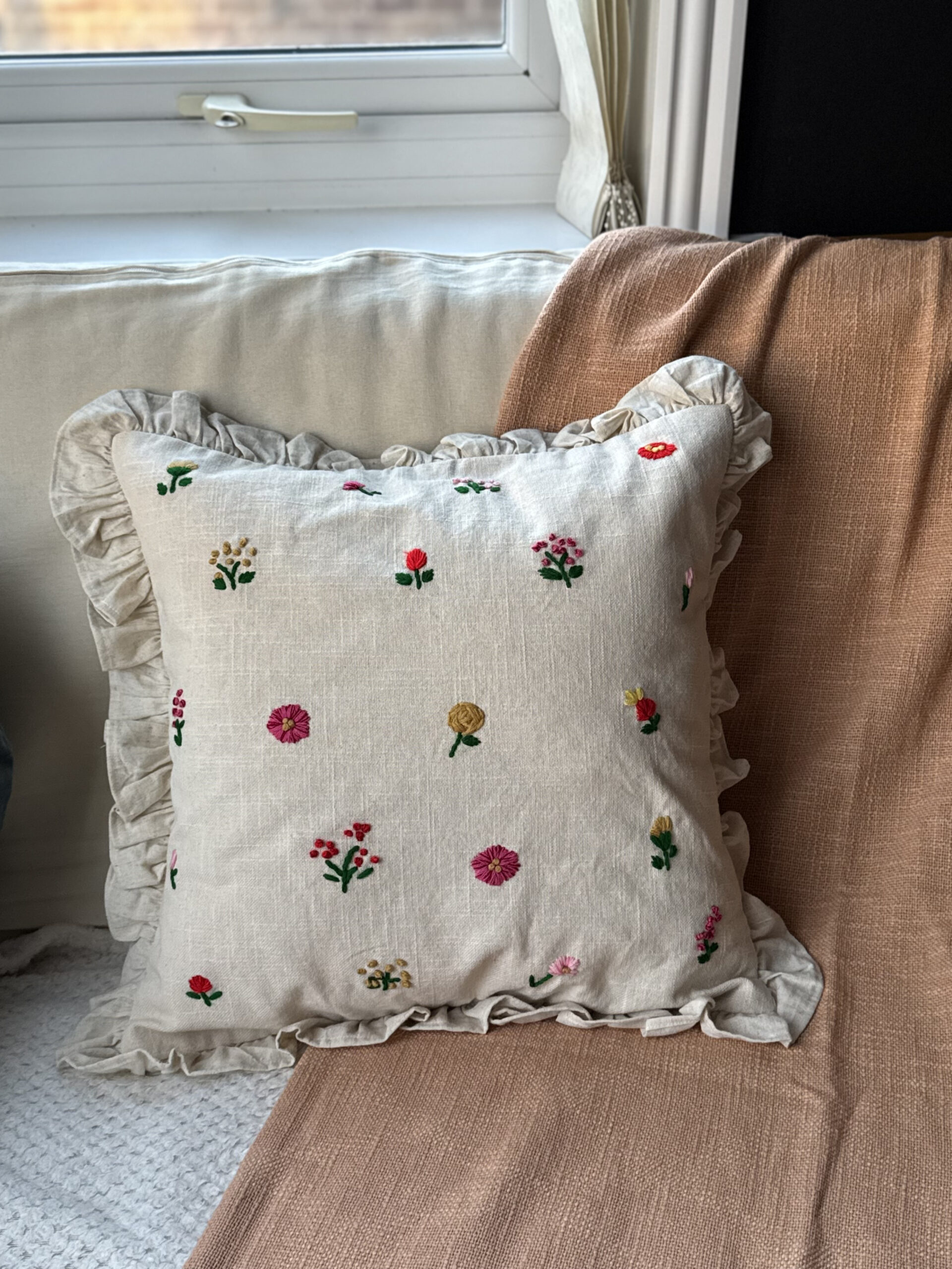 Be the first to review “Hand-Embroidered Meadow Ruffle Cushion Cover”