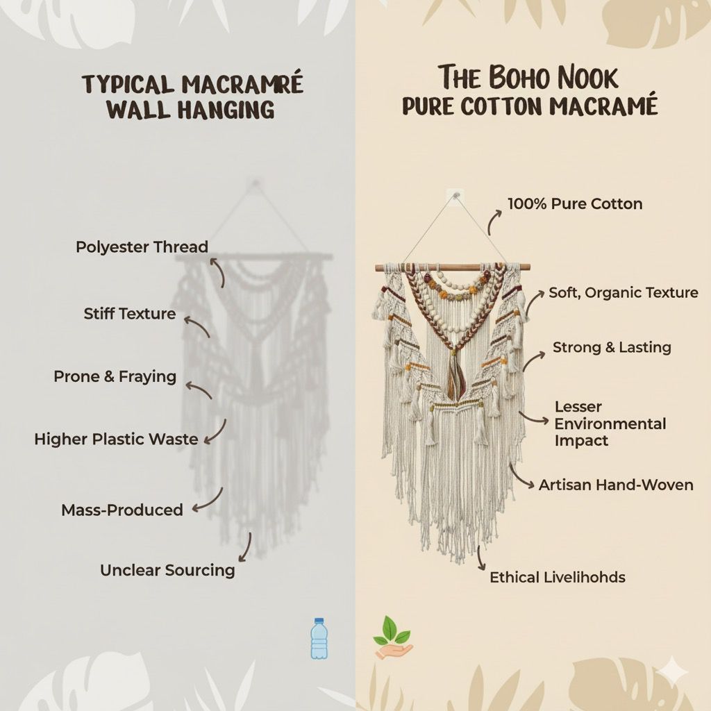 Elevate your space with a statement piece of true artisan craftsmanship. Our macrame wall hanging is lovingly handmade and hand-stitched by a local, skilled supplier in Delhi, celebrating traditional Indian textile art.