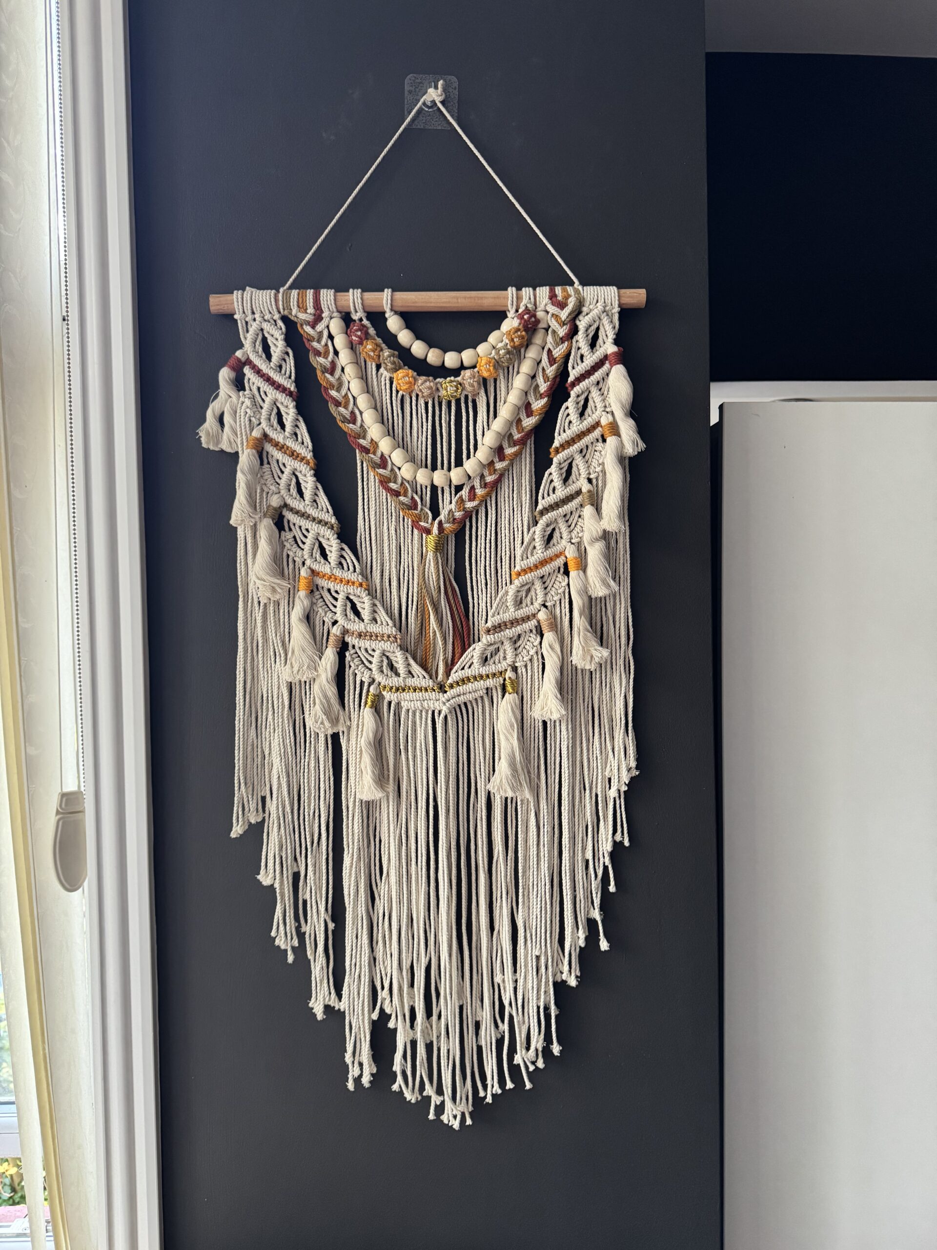 This stunning eco-friendly and sustainable wall art brings a layered, bohemian elegance to any room. Measuring 86 cm (H) x 43 cm (W), it’s the perfect size to anchor a gallery wall or become the main focal point above a bed or sofa.